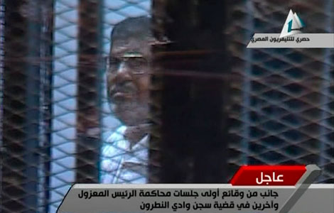 Nikolay Petshak carries the Olympic torch as he leads a group of members of local winter swimming clubs during the Sochi 2014 Winter Olympic torch relay in the waters of the Yenisei River in Russia's Siberian city of Krasnoyarsk, November 26, 2013. 30 members of winter swimming clubs took part in the relay, with the water temperature at about 5 degrees Celsius (41 degrees Fahrenheit) and the air temperature at about minus 8 degrees Celsius (17.6 degrees Fahrenheit). [Photo/icpress.cn]