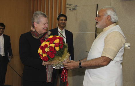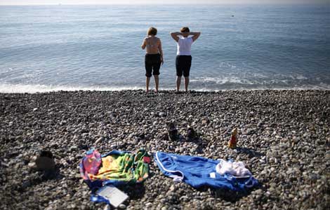 US finalists second placed Gus Kenworthy, winner Joss Christensen and third placed Nicholas Goepper (L-R) celebrate on podium after the men's freestyle skiing slopestyle finals at the 2014 Sochi Winter Olympic Games in Rosa Khutor, February 13, 2014. [Photo/Agencies]