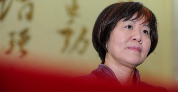 Deng Yaping answers questions from journalists during the National People's Congress (NPC) on March 3, 2010. Deng served one session of the NPC and three terms of the Chinese People's Political Consultative Conference.