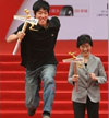 Wang Yan raises her right arm in greeting on Wednesday at the Shanghai No. 6 People's Hospital. The gymnast, who broke her neck and became paralyzed during the national titles in the city last month, has been moved out of intensive care into an ordinary ward but faces a long recovery.