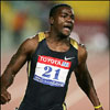 Justin Gatlin of the U.S. poses after setting a new 100 metres world record at the Qatar Super Grand Prix with a time of 9.76 seconds in Doha May 12, 2006. [Reuters]