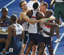 The United States made amends for their unhappy 4x100m appearances by retaining both men's and women's world titles in the 4x400 metre relays on the final day of the world championships on Sunday.