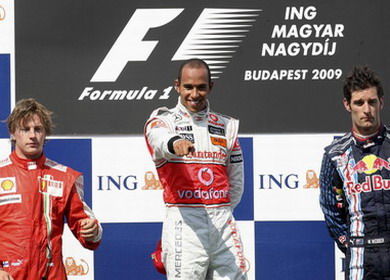 McLaren's Lewis Hamilton won his first Formula One race of the season Sunday at a Hungarian Grand Prix overshadowed by the absence of Felipe Massa, who remained hospitalized with life-threatening injuries from a crash a day earlier.