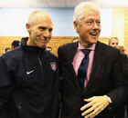 Former US President Bill Clinton got to his feet to celebrate his team's last-gasp goal against Algeria at the World Cup.
