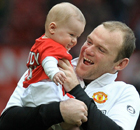 Manchester United's Wayne Rooney walks round the pitch with his son Kai following their English Premier League their English Premier League soccer match against Stoke City at Old Trafford in Manchester, May 9, 2010.
