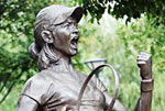 A girl poses for a photo with a statue of Li Na at a square in Wuhan, Central China’s Hubei province, the hometown of the tennis player who took the 2011 French Open singles title on June 4 this year.