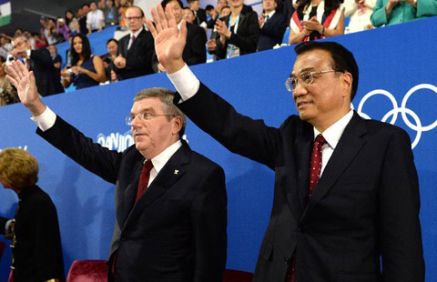 Chinese Premier Li Keqiang attends the closing ceremony of the second Summer Youth Olympic Games, in Nanjing.