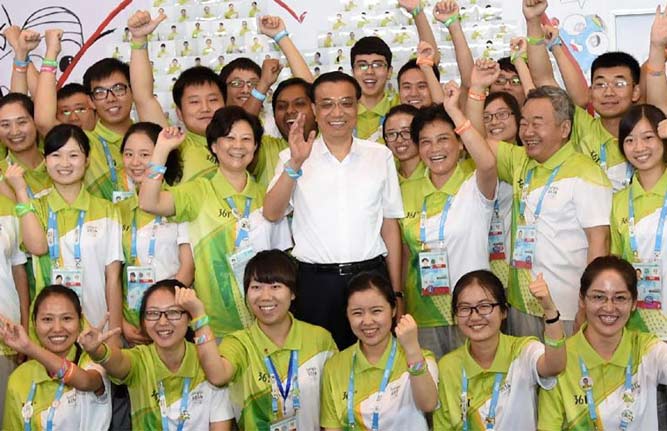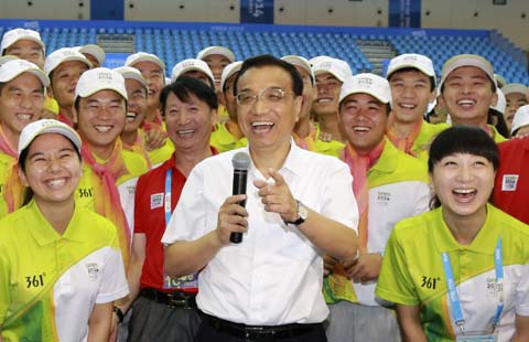 Premier Li attended the closing ceremony of the Games Thursday in Nanjing and visited the volunteers of the Games.