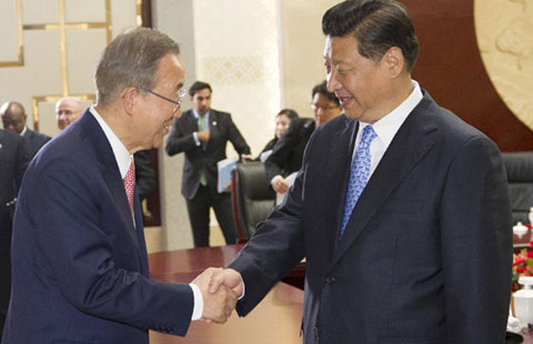 Chinese President Xi Jinping and UN Secretary-General Ban Ki-moon on Saturday discussed several hot issues, including Ebola, Ukraine and Iraq, in their fourth meeting this year.