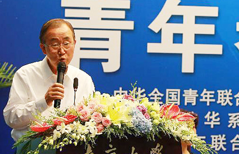 UN Secretary-General Ban Ki-moon on Saturday encouraged Chinese young people to work together with global companions to address poverty, climate change and other critical issues that the world is facing at the moment.