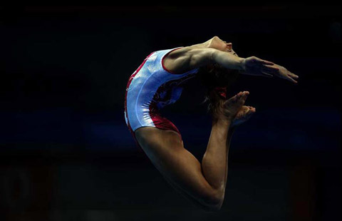 The performance, showed off by Youth Olympians, is part of a Youth Olympic Games program to encourage people to participate in sports.