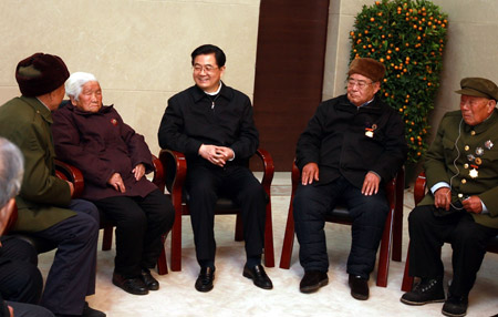 Updated: 2009-01-26 09:03 JINGGANGSHAN, Jiangxi Province - Chinese President Hu Jintao visited the eastern province of Jiangxi on Saturday and Sunday, calling on revolutionary veterans, model workers and farmers ahead of the Lunar New Year, China's most important holiday for family gatherings.