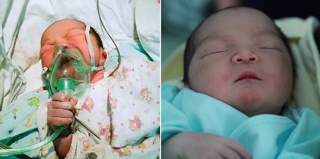 Photos of newborn holding oxygen mask go viral