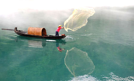 Fog-enveloped Xiaodongjiang River