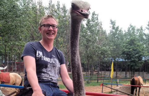 Mounting an ostrich isn't easy. Staying on is even harder. Visitors to Zhengzhou's Jinlu Ostrich Amusement Park don't get a saddle or stirrups when they hop on the giant birds' backs.