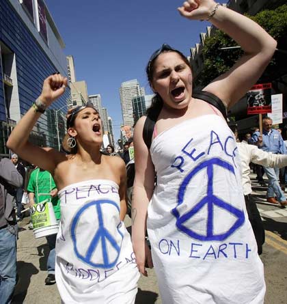 Anti-war demonstrators protest on the third
