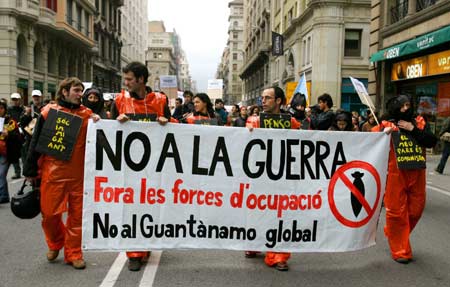 Guantanamo" in central Barcelona March 18, 2006. Anti-war protesters marched