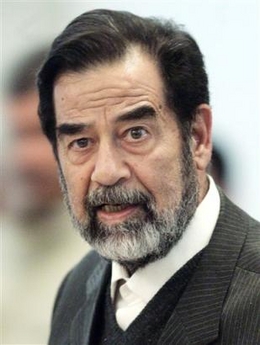 Saddam Hussein speaks at his trial in Baghdad in this March 1, 2006, file
