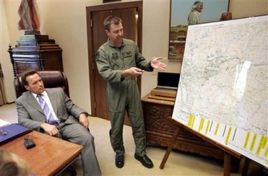 California as he gives California Gov. Arnold Schwarzenegger a briefing on