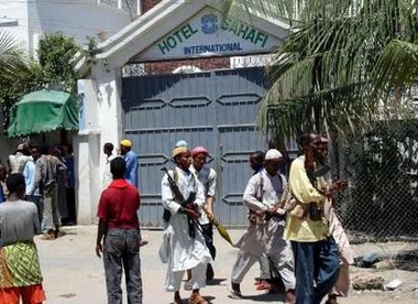 Somalia Islamic militia guard Sahafi Hotel after it was captured from those of the counter terrorism alliance in Somalia capital Mogadishu, May 25, 2006. Fresh clashes between rival Somali militias spread across Mogadishu on Thursday, killing up to 30 more people in the anarchic Horn of Africa nation's worst violence for years, witnesses said. [Reuters]