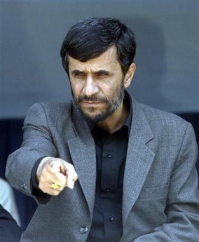 Iranian President Mahmoud Ahmadinejad points during a public gathering during his visit to the city of Qazvin, 90 miles (150 kilometers) west of the capital Tehran, Iran, Thursday, June 8, 2006. Mahmoud Ahmadinejad said Thursday that Iran was ready to discuss 'mutual concerns' over its controversial nuclear program but claimed that the West gave in to Iran. Ahmadinejad did not say whether Iran accepts a Western package of incentives aimed at enticing Iran to suspend uranium enrichment to open the way for negotiations with the United States and Europe. [AP]