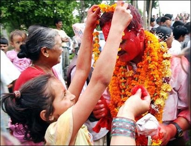 garlands upon his release from Nakhu jail near Kathmandu. A total of 182