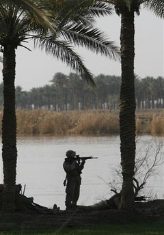 during a search for weapons caches outside the village of Abu Tiban, Iraq,