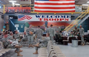 Pennsylvania National Guard, wait to be out processed at Camp Shelby, near