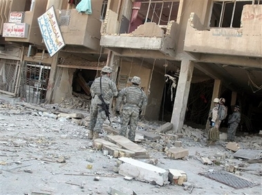 BAGHDAD, Iraq - Residents dug through the rubble of devastated buildings