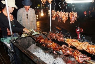 grill chickens on the roadside in capital Phnom Penh, Cambodia, Saturday,
