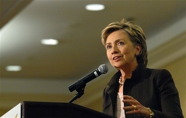 U.S. Sen. Hillary Rodham Clinton, D-N.Y., speaks at a Maryland Democratic Party fundraiser at the University of Maryland on Monday, Sept. 25, 2006, at a location in Adelphi, Md. [AP]