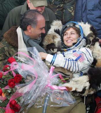 tourist Anousheh Ansari on board bumped down safely in the Kazakh steppe at dawn