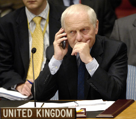 Britain's Ambassador to the U.N. Emyr Jones Parry sits in the Security