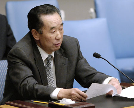 North Korean Ambassador to the United Nations Pak Gil-yon speaks after the