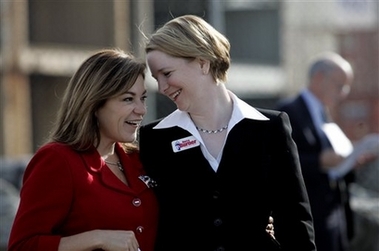 congressional candidate Darcy Burner, right, shares a laugh with Rep.