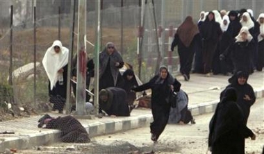 Reuters television footage showed Israeli forces opening fire and one of the women fall dead. At least 10 were wounded. The Israeli army said it had fired at armed Palestinians and was investigating whether it had also shot the women.