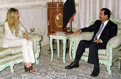 Saddam Hussein (R) receives the daughter of Libyan leader Muammar Gaddafi, A'ishah (L), in Baghdad in this October 22, 2000 file photo. U.S.-backed Iraqi television station Al Hurra said Saddam Hussein had been executed by hanging shortly before 6 a.m. (0300 GMT) on December 30, 2006. [Reuters]