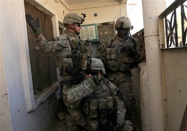 The US military said 14 suspects were detained and four weapons caches discovered during the day's operation - seemingly a low tally. But US officials say they are more concerned about establishing a long-term presence in the areas so that the public will gain confidence in security forces to protect them. Outside the capital, fighting continued. The military said four US soldiers were killed Wednesday in an explosion in Diyala province, among six new US deaths announced by the military. US officers have expressed concern that insurgents and militias are leaving Baghdad to transfer the fight to Diyala and other provinces that border the capital. Iraq's Sunni vice president, Tariq al-Hashemi, warned that advance publicity on the security operation had given Shiite militias time to flee the city for bases elsewhere in the country. "I have information that numerous of their leaders are now in Basra and other southern provinces in safe havens," he told Al-Arabiya television. "I believe that those who were behind the bloodshed and the chaos should be pursued and criminals must face justice." At least 38 Iraqis also were killed or found dead nationwide, including four civilians who died when a parked car bomb struck a predominantly Shiite district in central Baghdad. Only five bullet-riddled bodies were found on the streets of the capital, an unusually low number of apparent victims of so-called sectarian death squads mainly run by Shiite militias that have killed thousands in the past year. The Baghdad neighborhoods targeted by the Americans - Shaab, Ur and Baida - lie north of the Shiite militia stronghold of Sadr City, which had been off-limits until Prime Minister Nouri al-Maliki lifted his protection of the notorious Mahdi Army, the largest Shiite militia. Last year, US soldiers came under intense sniper fire in those neighborhoods from Mahdi Army militiamen who were expanding into Shiite areas outside Sadr City. This time, however, Iraqis watched in curiosity as some 2,500-3,000 troops - or an entire Stryker brigade - fanned out in the area, going house-to-house looking for weapons or suspected militia fighters as part of what it called "Operation Law and Order." The increased security measures drew a mixed response from Iraqis - some angry over the inconvenience, others embracing any effort to stop the rampant violence. "My friends and I who are the old women of the neighborhood went to the soldiers and welcomed them and prayed that God would help them to defeat the terrorists," said Um Sabah of the Mashtaal area in eastern Baghdad. "Although, the presence of army and vehicles is not very comfortable, we welcome it because it is for the sake of Iraq." There was little if any resistance. Soldiers even teased one young girl about her taste in music after they found her doing homework on a couch, wearing white and pink socks with a poster of Shakira on the wall. Some people left their doors open as the troops arrived, and little evidence of hostilities turned up other than some pictures of radical Shiite cleric Muqtada al-Sadr, an illegal bolt action rifle and a heavyset man watching an insurgent propaganda video that he said had appeared while he was channel surfing. Al-Maliki, a Shiite, is an ally of al-Sadr, and his