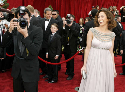 Jennifer Lopez laughs as her husband Marc Anthony takes a picture as they arrive at the 79th Annual Academy Awards in Hollywood, California February 25, 2007. [Reuters]