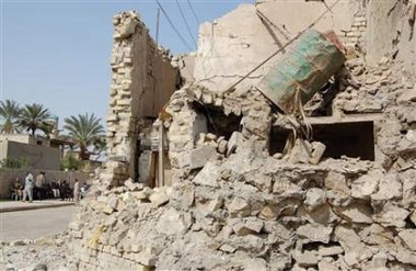 A destroyed police station is seen the morning after it was hit by a suicide truck bomb attack in Ramadi, Iraq, February 27, 2007. [Reuters]