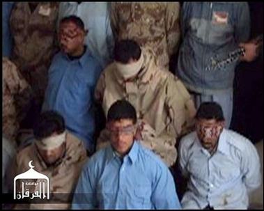 Meanwhile, gunmen rounded up two Sunni families that had received death threats for joining U.S.-organized talks with local Shiites, hauling away the men and boys and killing all six Saturday as suspected insurgents expanded a campaign of fear against opponents. U.S. forces also reported airstrikes and raids on what it called Sunni militant bases linked to al-Qaida in Iraq. A recent wave of Sunni reprisals appears linked to increasingly high-profile attempts to stir popular momentum against Sunni extremists trying to drive out the Shiite-led government and its American backers. Among those targeted include a range of Sunnis raising their voices against violence: imams, clan-based vigilantes and activists trying to bridge deep rifts with majority Shiites. The execution video released Saturday first depicts the 18 men, some in Iraqi military uniforms, blindfolded, hands tied behind their backs and lined up in three rows before a screen. The men in the front row are kneeling. Armed masked men were seen pointing machine guns at the captives. Two masked militants, with checkered scarves on their heads, then fire from handguns at close range into the backs of the men's heads, while a third militant carries a black banner ahead of them. As they are shot, the victims fall, head forward to the ground. The shooting is accompanied by chants of "Allahu Akbar," or "God is the Greatest." Male voices chant repeatedly in Arabic during the video: "At your service, sister" — a likely reference to the revenge for the allegedly raped Sunni woman. Another male voice is heard reading from the Islamic State of Iraq's statement posted on the same Web site Friday, saying the group's court had ordered the 18 security troops executed because Prime Minister Nouri al-Maliki's government had failed to meet the group's demands to hand over the officers who allegedly assaulted the Sunni woman in Baghdad last month, and to release all Sunni women detainees from Iraqi prisons.