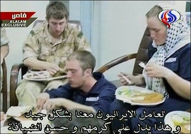 Mottaki said that if the alleged entry into Iranian waters was a mistake "this can be solved. But they have to show that it was a mistake, that will help us to end this issue." "Admitting the mistake will facilitate a solution to the problem," he said late Wednesday night in Riyadh, Saudi Arabia, where he was attending a summit of Arab leaders. It was the first time that Iran has publicly suggested a way to resolve the crisis, but British acquiescence appeared unlikely as the country has been insisting since the crisis began that its troops were in Iraqi waters and released documents on Wednesday to back up the claim. There was no immediate comment from the British to Mottaki's statement. A call to Britain's Foreign Office in London was not answered early Thursday. Mottaki also backed off a prediction that the female sailor, Faye Turney, could be freed Wednesday or Thursday, but said Tehran agreed to allow British officials to meet with service personnel. "We have accepted that (the British request), there is no problem. Measures are underway (to arrange meeting.) They can meet them," he said. British Prime Minister Tony Blair's government announced it was freezing all dealings with Iran except to negotiate the release of its personnel, adding to a public exchange of sharp comments that helped fuel a spike in world oil prices. Britain's military released a GPS readout it said proved the Royal Navy personnel were seized 1.7 nautical miles inside Iraqi waters Friday. But Mottaki said Iran had GPS devices from the British boats that showed they were in Iranian territory. A few hours later, a brief video of the captured Britons was shown on Iran's Arabic language satellite television station, Al-Alam. One segment showed sailors and marines sitting in an Iranian boat in open waters immediately after their capture. The video also displayed what appeared to be a handwritten letter from Faye Turney, 26, to her family. "I have written a letter to the Iranian people to apologize for us entering their waters," it said. The letter also asks Turney's parents in Britain to look after her 3-year-old daughter, Molly, and her husband, Adam. The video showed Turney in checkered head scarf and her uniform eating with other sailors and marines. Later, wearing a white tunic and black head scarf, she sat in a room before floral curtains and smoked a cigarette. Turney was the only detainee to be shown speaking, giving her name and saying she had been in the navy for nine years. "Obviously we trespassed into their waters," Turney said at one point, her voice audible under a simultaneous Arabic translation. "They were very friendly and very hospitable, very thoughtful, nice people. They explained to us why we've been arrested. There was no harm, no aggression." In backing away from predictions that Turney could be freed Wednesday or Thursday, Mottaki said Iran will look into releasing her "as soon as possible." Asked when Iran would release Turney, Mottaki said in the interview with the AP, "We will look into this as soon as possible." He said earlier reports that he had said she could be freed Wednesday or Thursday were incorrect. "I was probably misquoted," he said. Earlier in the day, Mottaki told AP on the sidelines of an Arab summit in the Saudi capital, "Today or tomorrow, the lady will be released." The Turkish television station, CNN-Turk, had also reported him saying Wednesday she would be freed "today or tomorrow." But the talk of releasing Turney did little to calm British anger. Before the broadcast, a spokesman for Blair said any showing of British personnel on TV would be a breach of the Geneva Conventions. After the footage was aired, Foreign Secretary Margaret Beckett said she was "very concerned about these pictures and any indication of pressure on, or coercion of, our personnel. ... I am particularly disappointed that a private letter has been used in a way which can only add to the distress of the families." The third Geneva Convention bans subjecting prisoners of war to intimidation, insults or "public curiosity." Because there is no armed conflict between Iran and Britain, the captives would not technically be classified as prisoners of war. Blair told the House of Commons that "there was no justification whatever ... for their detention, it was completely unacceptable, wrong and illegal." "We had hoped to see their immediate release; this has not happened. It is now time to ratchet up the diplomatic and international pressure in order to make sure the Iranian government understands its total isolation on this issue," he said. Beckett said Britain would focus all its efforts on resolving the issue. "We will, therefore, be imposing a freeze on all other official bilateral business with Iran until the situation is resolved. We will keep other aspects of our policy towards Iran under close review and continue to proceed carefully. But no one should be in any doubt about the seriousness with which we regard these events," she said. The statement appeared to refer to diplomatic dealings rather than business relations, but Britain's Department of Trade said the country does not buy oil directly from Iran. Oil prices rose by more than $1 a barrel Wednesday to a six-month high amid worries about the standoff, which came as the U.S. Navy is carrying out its largest show of force in the Persian Gulf since the 2003 invasion of Iraq. President Bush discussed the 15 Britons with Blair over a secured video conference call Wednesday, White House deputy press secretary Dana Perino said. "The president fully backs Tony Blair and our allies in Britain," she said. British officials have said the 15 Britons were taken captive after completing a search of a civilian ship near the mouth of the Shatt al-Arab waterway, which forms the border between Iran and Iraq. Soon after the sailors and marines were seized, Britain had hoped to resolve the issue quickly. In 2004, six British marines and two sailors were captur