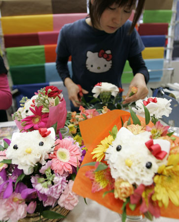 form of the Hello Kitty cat, during a photo opportunity at a shop in Tokyo April