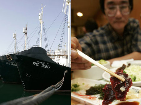 company Hvalur lie in the harbour at Reykjavik (Left). Customer Yokobori