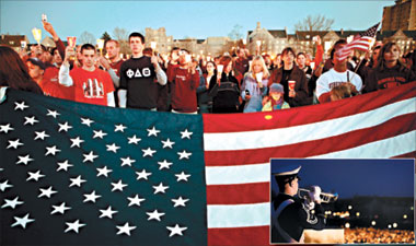 after the killings at Virginia Tech on Tuesday. Inset: A Virginia Tech