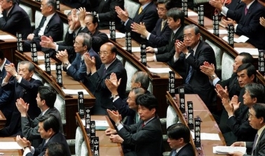 Lawmakers applaud at Upper House plenary session in Tokyo as