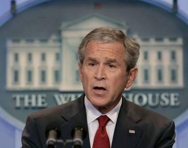US President George W. Bush holds his first official news
