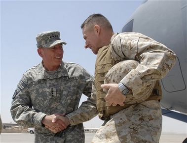 The Joint Chiefs are considering a range of actions, including another troop buildup, Pace said without making any predictions. He called it prudent planning to enable the services to be ready for Bush's decision. The military must "be prepared for whatever it's going to look like two months from now," Pace said in an interview with two reporters traveling with him to Iraq from Washington. "That way, if we need to plus up or come down" in numbers of troops in Iraq, the details will have been studied, he said. Pace, on his first visit since US commanders accelerated combat operations in mid-June, said another option under consideration is maintaining current troop levels beyond September. There are now about 158,000 US troops in Iraq, reflecting a boost of about 30,000 to carry out the new strategy Bush announced in January. The plan is focused on providing better security for Iraqis in Baghdad, but the intended effect - political reconciliation between Sunnis and Shiites - has yet to be achieved, and many in Congress are clamoring to begin withdrawing troops soon. In Washington on Monday, Senate Democratic leader Harry Reid said he would force the chamber's first all-night debate on the Iraq war Tuesday night in advance of a vote Wednesday on whether to bring home all combat troops by next spring. Republicans are using Senate rules to insist that the measure have 60 votes to pass - a de facto filibuster since it takes that many votes to cut off debate. Pace said in Iraq that the administration must consider not only what works best on the battlefield but also the growing stress of more than four years of war on American troops and their families. He repeatedly mentioned his concern about soldiers and Marines doing multiple tours of duty and the decision in January to extend soldiers' Iraq deployments by three months, to 15 months. "That has impact on families," he said in a separate Associated Press interview at a US military headquarters on the outskirts of the capital after meeting with commanders and conferring by secure video teleconference with Bush. Pace also conferred with Petraeus and Lt. Gen. Raymond Odierno, the No. 2 commander in Iraq, who said he did not currently foresee requesting more troops. "Right now I can't find an assessment where I would say I need more troops," Odierno said, adding that he is confident that by September he will be able to give Petraeus his advice on how the troop buildup is working. "My assessment right now is, I need more time" to understand how the offensive targeting al-Qaida in Iraq is working and how it could lead to political progress, Odierno said. "I'm seeing some progress now here in Iraq. We have really just started what the Iraqis term 'liberating' them from al-Qaida. What I've got to determine is what do I need in order to continue that progress so that the political piece can then take hold and Iraqi security forces can hold this for the long term." Pace said he saw signs of improvement since his previous visit in April, based in part on a 30-minute aerial tour of Baghdad in a Black Hawk helicopter as well as private talks with commanders. "The surge is having very good positive results on the streets of Baghdad," he told AP. "We have yet to see the political progress and results that you would hope to see." All the while, the violence continues. On Monday, a