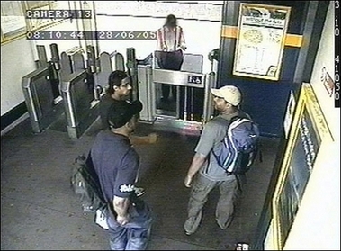 A handout picture given by London Metropolitan Police shows a grab image taken from a CCTV footage dated 28 June 2005 showing Shahzad Tanweer, (L) Germaine Lindsay (C) and Mohammed Sidique Khan, (R) three of the four 07 July London suicide bombers entering Luton Train Station during an apparent dummy run of their 07 July attack. [Agencies]