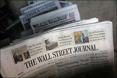 Copies of the Wall Street Journal and the New York Post are displayed at a New York kiosk in June 2007. Rupert Murdoch's News Corp. appears to have won sufficient backing from members of the Bancroft family to secure its takeover bid for Dow Jones Co., The Wall Street Journal reported online Tuesday.[File]